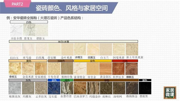 瓷砖按照颜色分,可分为11大色系: